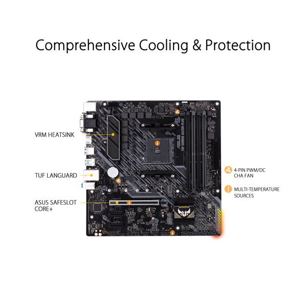 AMD A520 Chipset Based (Ryzen AM4) micro ATX motherboard with M.2 support, TUF Gaming A520M-Plus brings in, Gigabit Ethernet, HDMI/DVI/D-Sub, SATA 6 Gbps, USB 3.2 Gen 2 Type-A